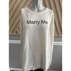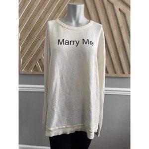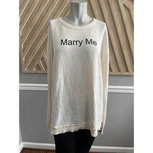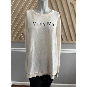 Wildfox Couture Marry Me Juliet Barefoot Sweater isn't asking for too much. Except marriage. No biggie. This super soft Wildfox sweater has Marry Me written on the front. Don't blame us if you get hitched in this top. Perfectly oversized so you get that laid-back off duty look. Ribbed collar, sleeve cuffs and bottom hem. Super cozy. Throw this sweater on with mesh leggings and finish with a slouchy beanie.