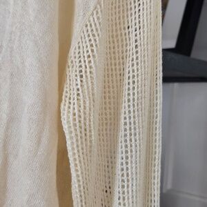 Wildfox ivory / cream cropped sweater. Lightweight with a beautiful drape, lots of loose stretch, crop design. I'd say all season sweater. Design on front in a more open knit with a southwest, western, desert vibe - with the silhouette of the sun, cactus and coyote. Wear it layered with color for a more pronounced pattern. Wear It on it's one for a bit more subtle look. Sleeves also have some of that open knit stitching. Really cute and comfortable top. Oversized, crop style. Cotton & lyocell. Size medium. Very good condition - sitting in my closet - tried on several times but not worn.