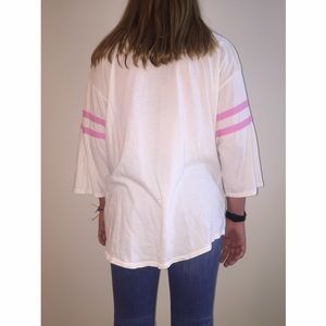 Medium, wildfox oversized tee with a pink heart, sleeves are bigger to give them a flowy look, on the right and left bicep there are two pink stripes, worn once and in great condition!