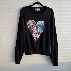 WILDFOX OVERSIZED SEQUINED HEART BLACK PULLOVER CREWNECK SWEATSHIRT