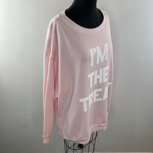 WILDFOX Pink Cotton Blend "I'm The Treat" Graphic Print Pullover Sweatshirt Sz L