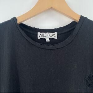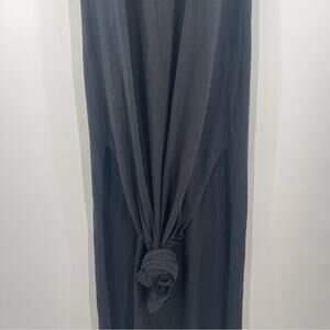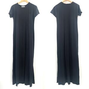 WILDFOX Small Dress Maxi Black Embroidered Logo High Side Slits Cotton Long
