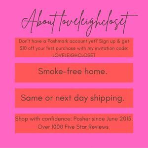 ▪️About loveleighcloset: Smoke-free home. Same or next day shipping. Shop with confidence: Posher since June 2015. Over 1000 Five Star Reviews