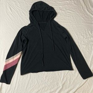 WILDFOX Sweat Halo Black Hoodie Pullover with Pink Stripes