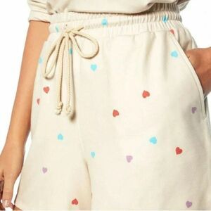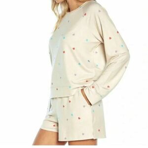 WILDFOX Sweatshirt Short Lounge Set Pajamas Super Soft Ivory/Cream/Oatmeal Heart Print 2XL