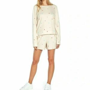 WILDFOX Sweatshirt Short Lounge Set Pajamas Super Soft Ivory/Cream/Oatmeal Heart