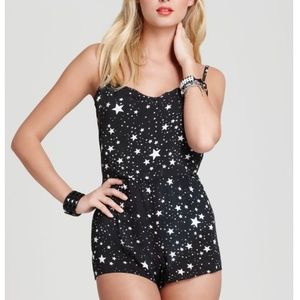 Rare light blue w/ white stars Wildfox Swim Starry Playsuit Romper. Ties is the back & has adjustable straps. Light weight. Perfect over a bathing suit.