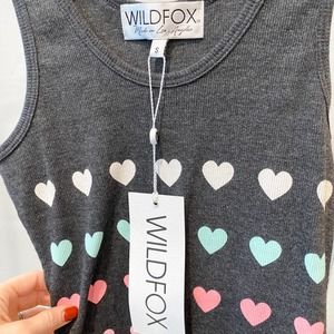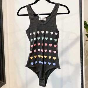 WILDFOX Women's Grey/ Pastel Multi Heart Scoop Neck Ribbed Tank Bodysuit sz S