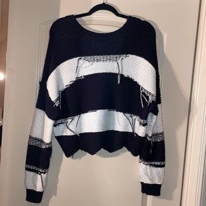 WILDFOX navy and white stripe v neck sweater