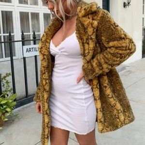 WILDSIDE Snake Print Faux Fur Teddy Coat Jacket Ye
