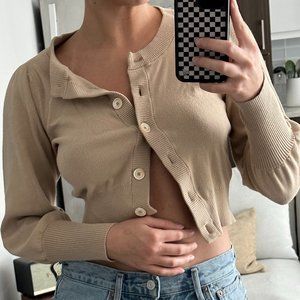 Comfy, yet so so stylish. It's the essential nude cropped cardigan for your closet. No pilling concerns, lightweight cotton feel and fun to play around with the buttons. And, FYI, this style is not sold anymore in Aritizia - snag these while you can :)