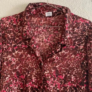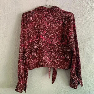 WILFRED ARITZIA Brown/Fushsia Custom Abstract Print Tie-Front Silky Blouse Sz S