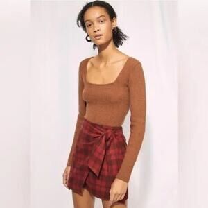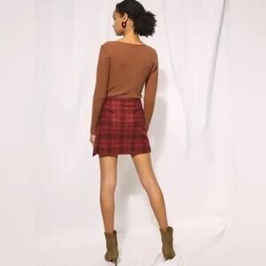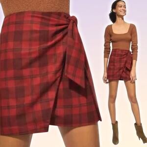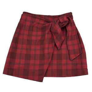 WILFRED Aritzia Wool Wrap-Front High Rise Mini Skirt Sz 0 Red Plaid