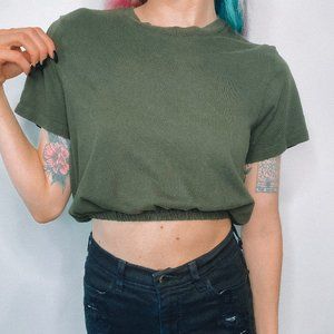 Elastic on the bottom of shirt to create a scrunched look!