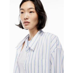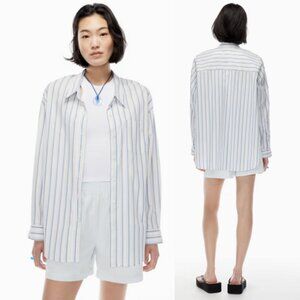 WILFRED FREE ARITZIA Relaxed Shirt Organic Cotton Button Up Blue Stripe Size M