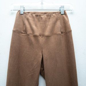 A lovely suede textured, camel colored leggings from the brand Wilfred, perfect for those workout to errands kind of day. It is a high rise and flattering and elongating to the legs. It has stretch on the waist. In good used condition, no known rips, tears or stains.