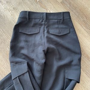 These are mid-rise bootcut cargo pants with front slash pockets, side cargo pockets and a slim fit. They're made with Crepette™ — Wilfred’s iconic crepe fabric famous for its subtle texture and breezy, effortless drape. It’s sourced from an innovative Japanese mill.