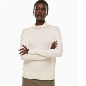 A cozy Wilfred staple, this is a fully fashioned mockneck sweater with dropped shoulders.