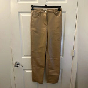 Wilfred The Melina Pant High-waisted Vegan Leather Cognac Pants Size: 2 Zip fly with tack button closure Topstitch detailing throughout Straight Leg