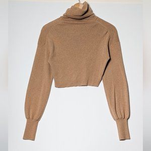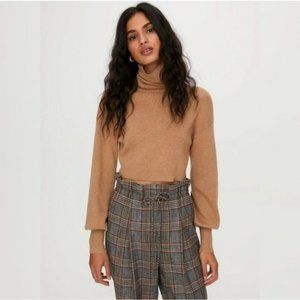 WILFRED Rebecca Sweater Wool Light Brown Cropped Turtleneck XXS 00 Aritzia