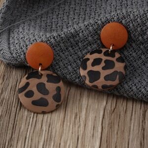 **WILLA* Round Leopard Pattern Wood Fashion Earrings