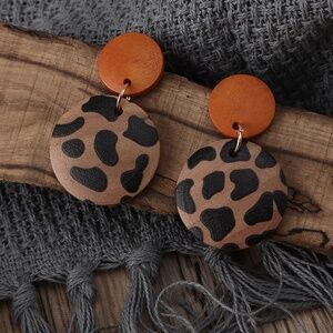 **WILLA* Round Leopard Pattern Wood Fashion Earrings