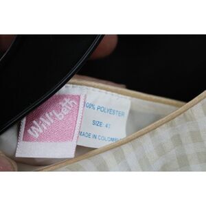 WILL'BETH SIZE 4 SLEEVELESS GOLD BEIGE GINGHAM WITH SATIN TRIM