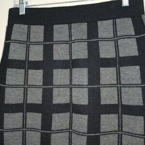 WILLI SMITH PULL ON KNIT/WOOL MIDI SKIRT, GRAY AND BLACK PLAID, SIZE MEDIUM