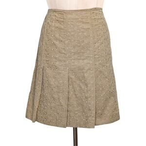 WILLI SMITH Tan Pleated Embroidered Boho Floral Flower Skirt 12
