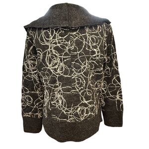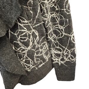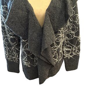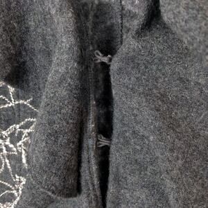 WILLI SMITH Women Cardigan Sweater Gray Boiled Wool Embroidered Flounce Collar L