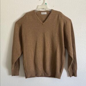 WILLIAM LOCKIE Men's Tan 100% Lambswool V-Neck Sweater Size XXXL in excellent used condition.