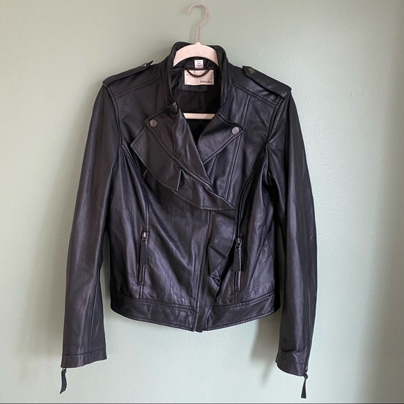 WILLIAM RAST LEATHER Moto Ruffle Jacket
