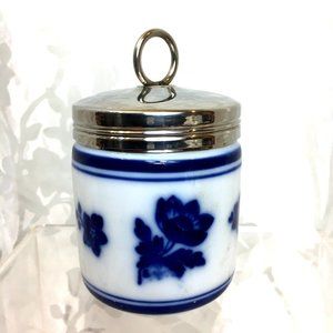 WILLIAMS SONOMA Blue & White 4” Egg Floral Ceramic Coddler