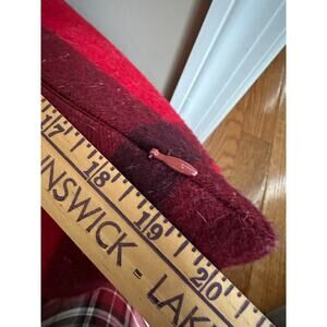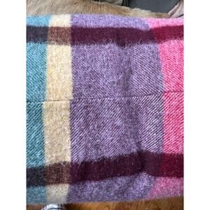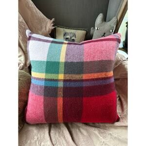WILLIAMS SONOMA wool plaid pillow pink red green 20x20”with down feather insert