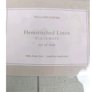 WILLIAMS-SONOMA New! HEMSTITCH 100% LINEN 4 PLACEMATS Lt Green NIP HUNGARY 14X20