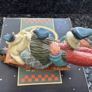 This vintage figurine from Williraye Studio depicts a girl pushing a wheelbarrow filled with carrots. The piece was manufactured in 1998 and is a great addition to any collection. The girl's dress and the carrots in the wheelbarrow are perfect for the spring occasion. The figurine is made from high-quality materials and will make a great gift for collectors of all ages. The subject of the piece is a garden, making it a great gift for those who love to collect garden related items. This item is a must-have for collectors of decorative collectibles and sculptures & figurines.