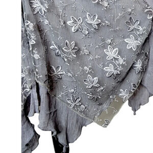 WILLOW AND JAYE Women's Embroidered Floral Mesh Crepe Cardigan Size Large Gray