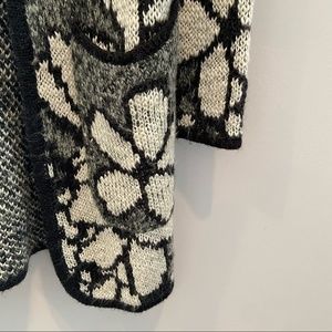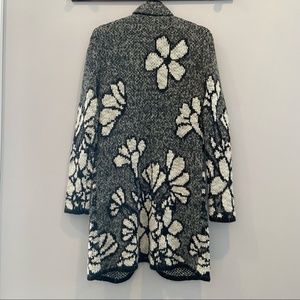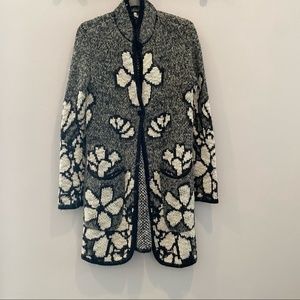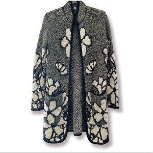 WILLOW & CLAY Coatigan Floral Single Button Wool Blend Long Knit Cardigan Small