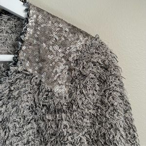 3/4 sleeve jacket with sequined shoulders. Super cute and great for dressing up or down. Appropriate for the office or a night out!
