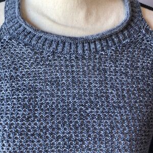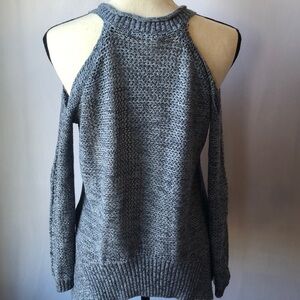 Willow & Clay XS Blue Cold Shoulder see through asymmetrical hem sweater
