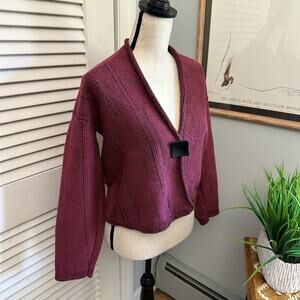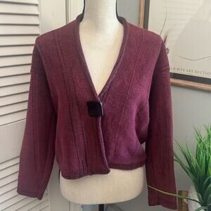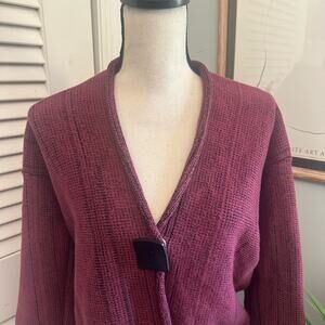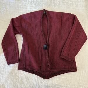 WILLOW Womens Sweater Small Mauve Chunky Cardigan Retro Bohemian Lagenlook