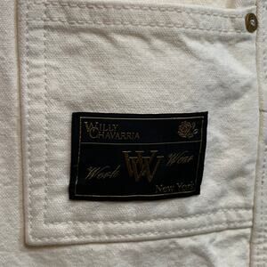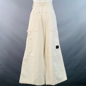 WILLY CHAVARRIA carpenter casual pants in an off white cotton woven fabric featuring a baggy design, high waisted style, and zip fly closure. Made in USA.