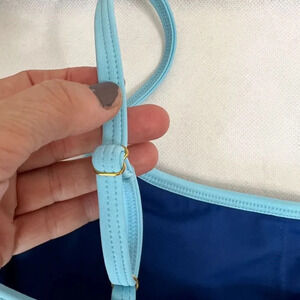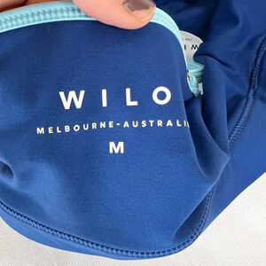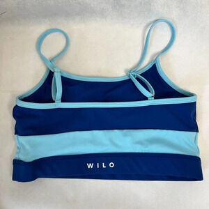 WILO the Label Blue Two Tone Colorblock Adjustable Strap Lightly Padded Sports Bra Sz MD