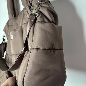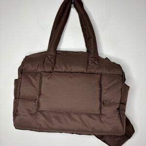 WILO The Label Puffer Brown Tote w/ Pouch Travel Bag with Luggage Sleeve