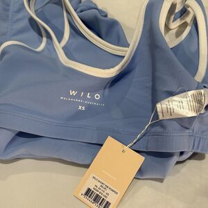 WILO the Label Short Rib Romper Athletic One Piece run yoga Blue NWT $78 XS
