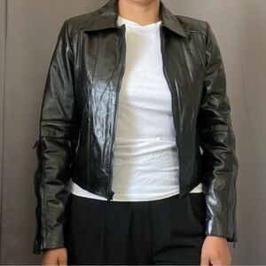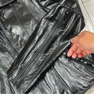 WILSON Genuine Leather Moto Jacket size 10 Black shiny