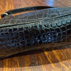 WILSON LEATHER * BLACK embossed CROC Purse HANDBAG * pockets * toggle