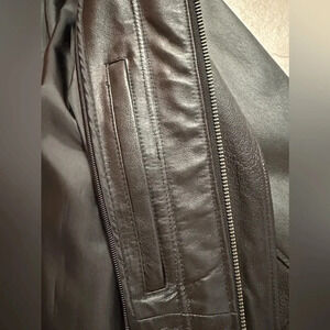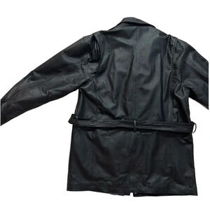 WILSON LEATHER ~ Men’s black leather mid-length coat excellent condition size L