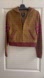 Amazing comfy FLAWLESS real 100% suede tan leather jacket with pink stripe detail on knit sleeves and hem, full knit hood.