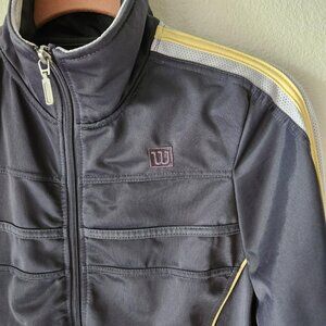 WILSON Vintage Grey & White Track Jacket Women Sz M Tennis Pickleball Atleisure